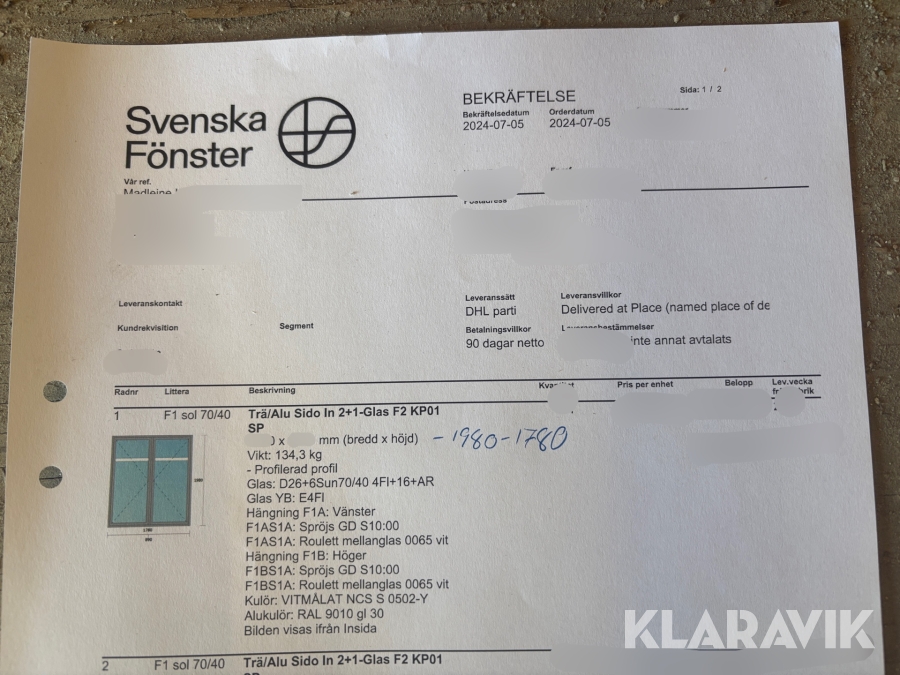 Du som köpare är skyldig att kontrollera objektet vid hämtning. Skiljer sig något avsevärt jämfört med informationen på klaravik.se? Kontakta då Klaravik innan du tar objektet från platsen. Läs fullständiga köpvillkor.