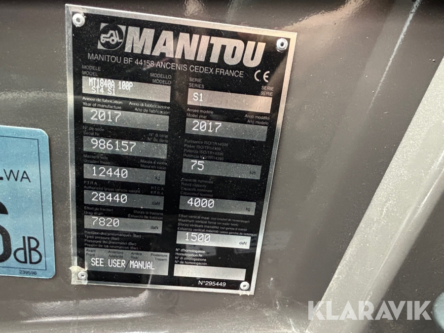 Teleskoplastare Manitou MT1840A med redskap