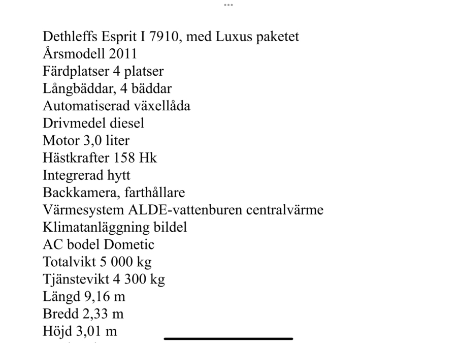 Husbil Fiat Dethleffs Espirit l 7910 Luxus-paketet