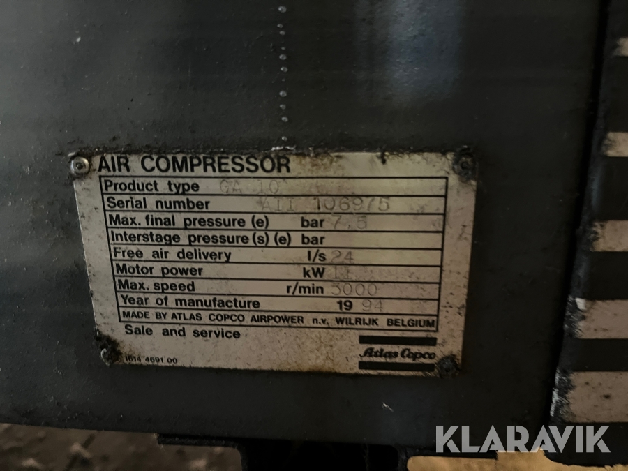 Skruvkompressor Atlas Copco GA10