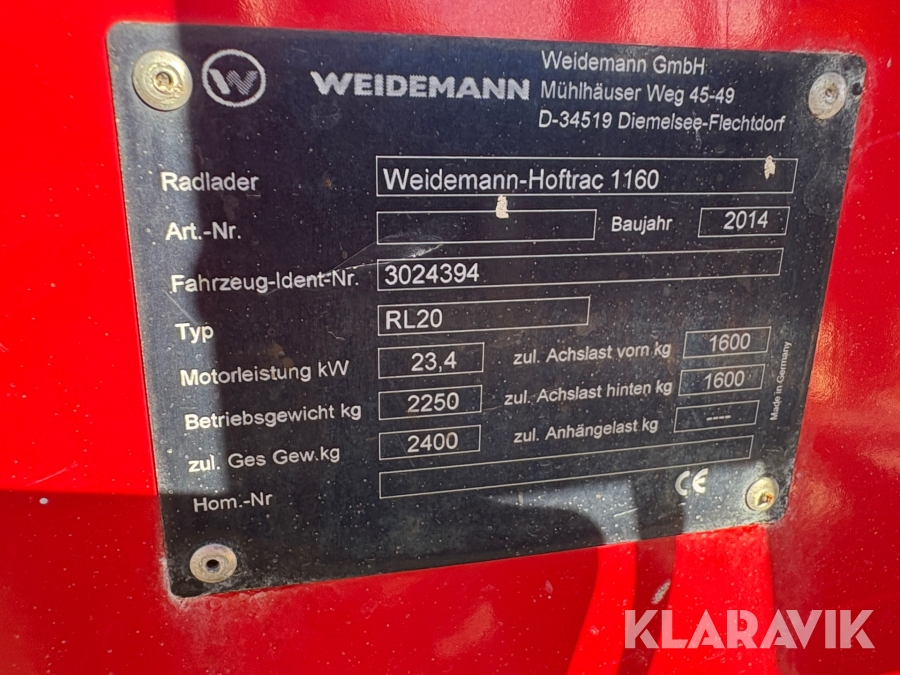 Redskapsbärare / kompaktlastare Weidemann Hoftrac 1160 med skopa