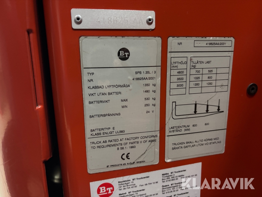 Ståstaplare BT SPS 1.35L/3