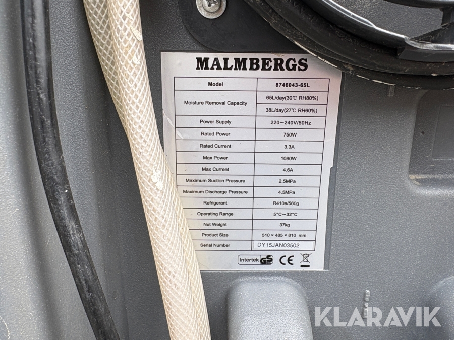 Avfuktare Malmbergs 8746043-65L