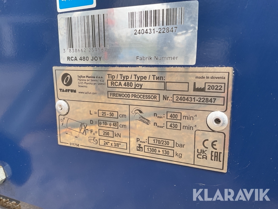 Vedmaskin Tajfun RCA 480 joy med matarbord