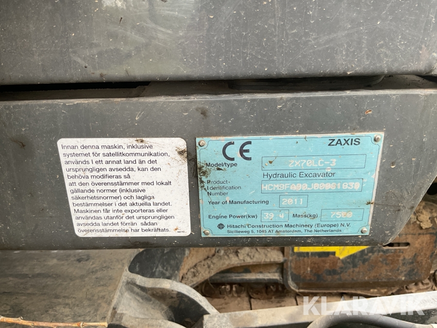 Grävmaskin Hitachi ZX 70LC med tiltrotator och redskap