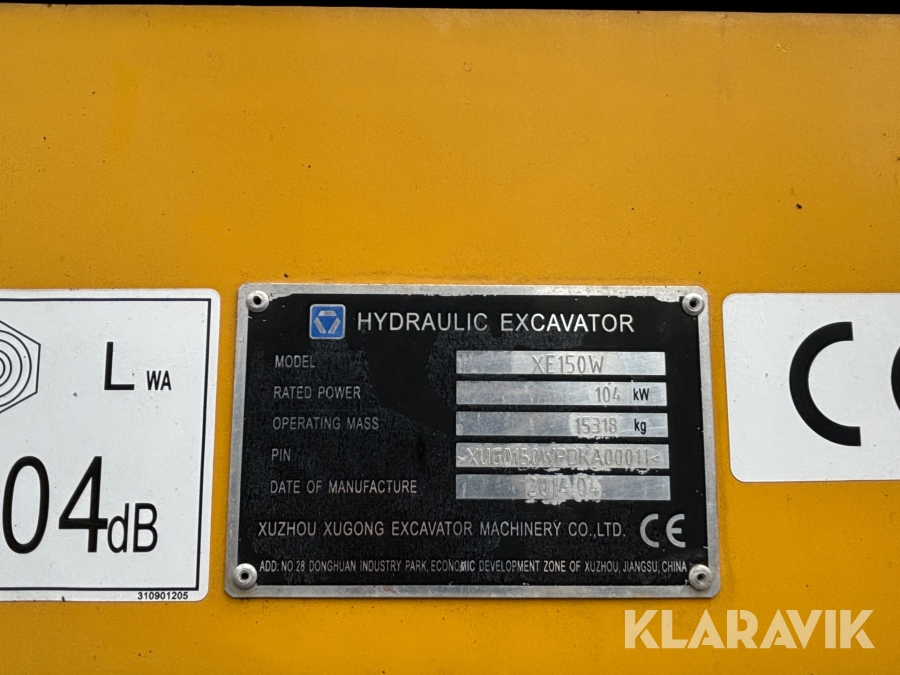 Grävmaskin XCMG XE150W med tiltrotator