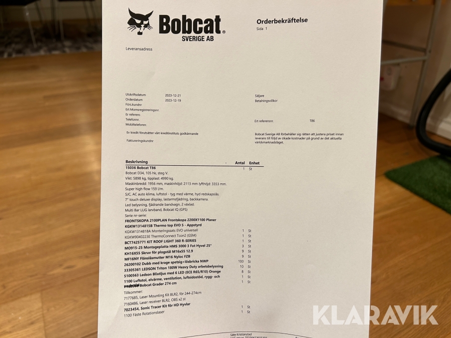 Du som köpare är skyldig att kontrollera objektet vid hämtning. Skiljer sig något avsevärt jämfört med informationen på klaravik.se? Kontakta då Klaravik innan du tar objektet från platsen. Läs fullständiga köpvillkor.