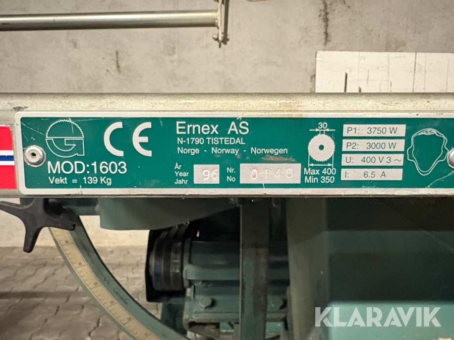 Gjerdesåg / Byggsåg Ernex 1603 inkl. sågbord
