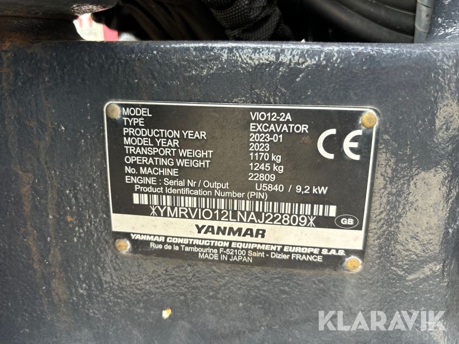 Grävmaskin Yanmar VIO12-2A med 3st skopor