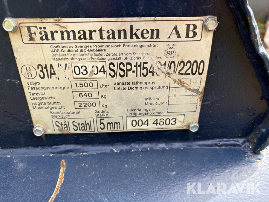 Dieseltank Färmartanken 1500 liter
