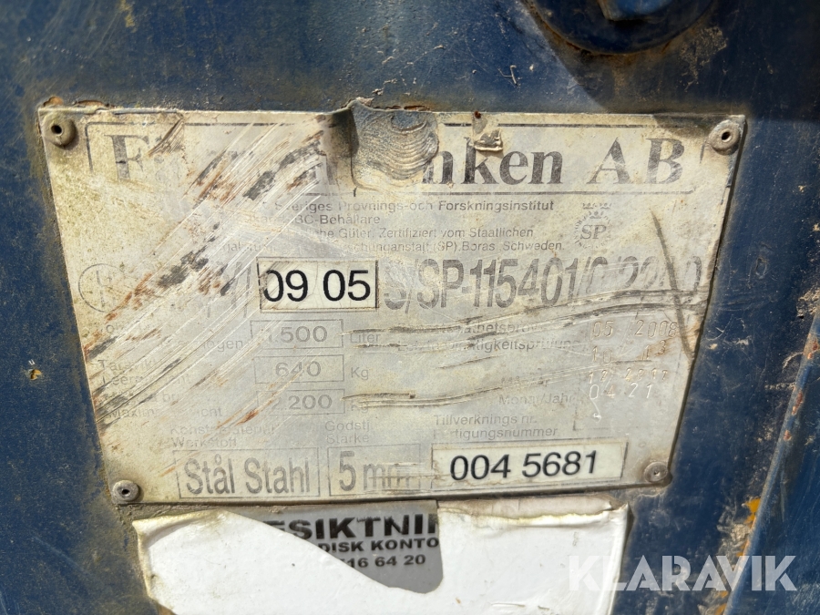 Boka frakt? Det finns ingen specifik information om frakt för just det här objektet, men om du skickar oss en förfrågan via vårt fraktformulär, så undersöker vi möjligheten. Paket, EU-pall eller större maskin? Klaravik har fraktavtal med Schenker och i de fall vi kan hjälpa till med frakt gäller det objekt som ryms i paket eller inom en EU-pall (upp till 120*80 cm och 990 kg). Det går att beställa frakt inom Sverige, dock inte till utlandet. Vid frakt på större maskiner rekommenderar vi gärna transportföretag som du kan kontakta.