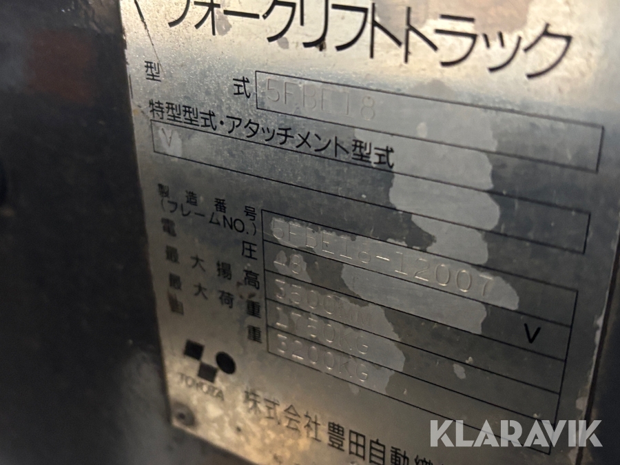 Motviktstruck Toyota 5FBE18