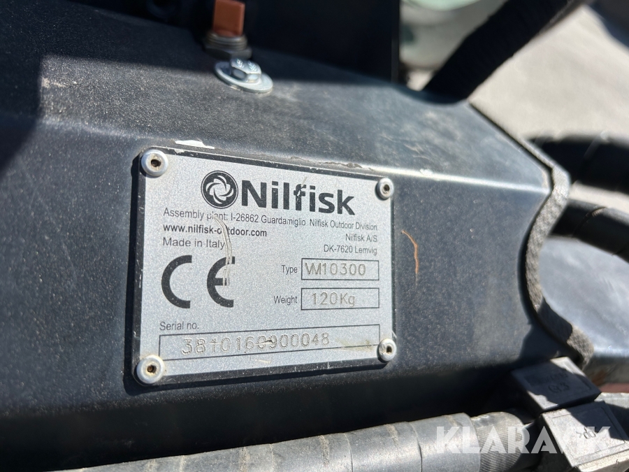 Sopmaskin / redskapsbärare Nilfisk Cityranger 3500 med plog, spridare & ställning till sopbehållaren