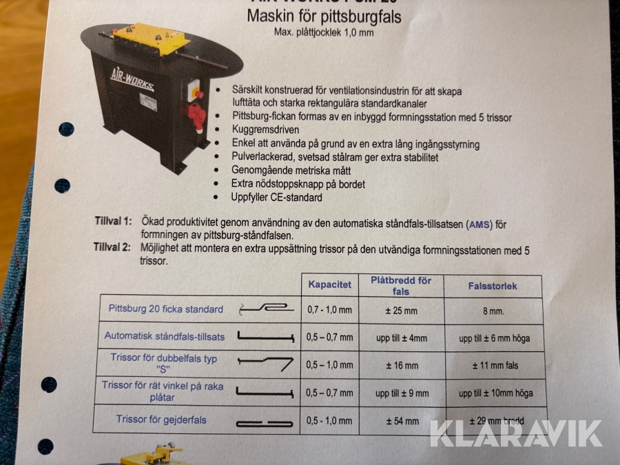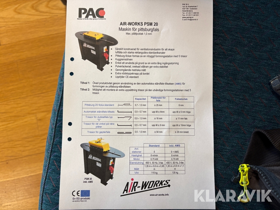 Boka frakt? Det finns ingen specifik information om frakt för just det här objektet, men om du skickar oss en förfrågan via vårt fraktformulär, så undersöker vi möjligheten. Paket, EU-pall eller större maskin? Klaravik har fraktavtal med Schenker och i de fall vi kan hjälpa till med frakt gäller det objekt som ryms i paket eller inom en EU-pall (upp till 120*80 cm och 990 kg). Det går att beställa frakt inom Sverige, dock inte till utlandet. Vid frakt på större maskiner rekommenderar vi gärna transportföretag som du kan kontakta.