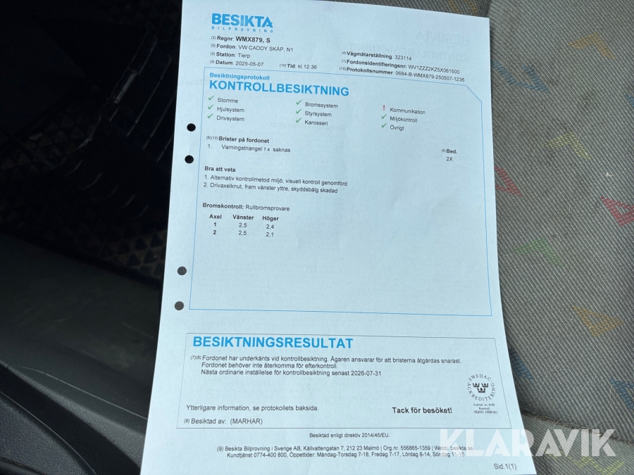 Skåpbil Volkswagen Caddy nybesiktigad och servad