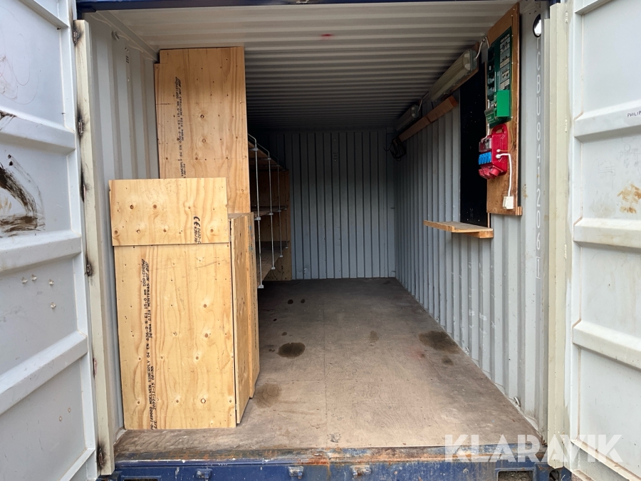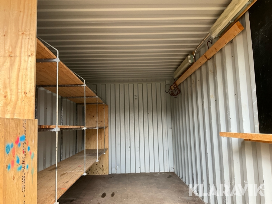 Container 20 fot med belysning och hyllsystem