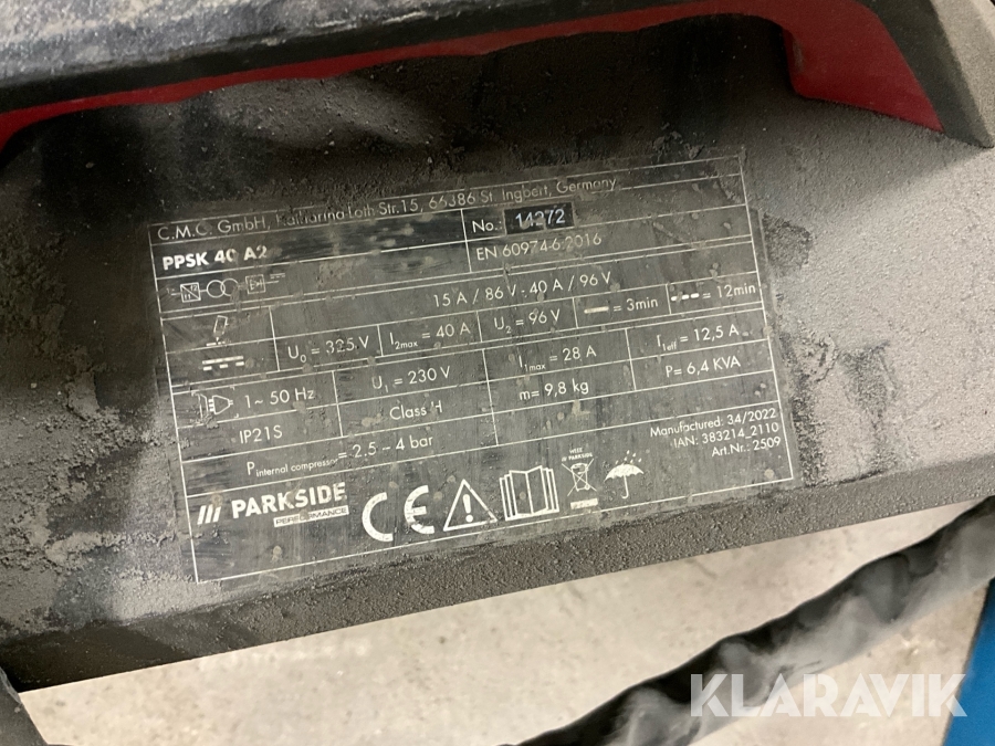 Plasmaskärare Parkside PPSK 40 A2 3 st, med inbyggd kompressor