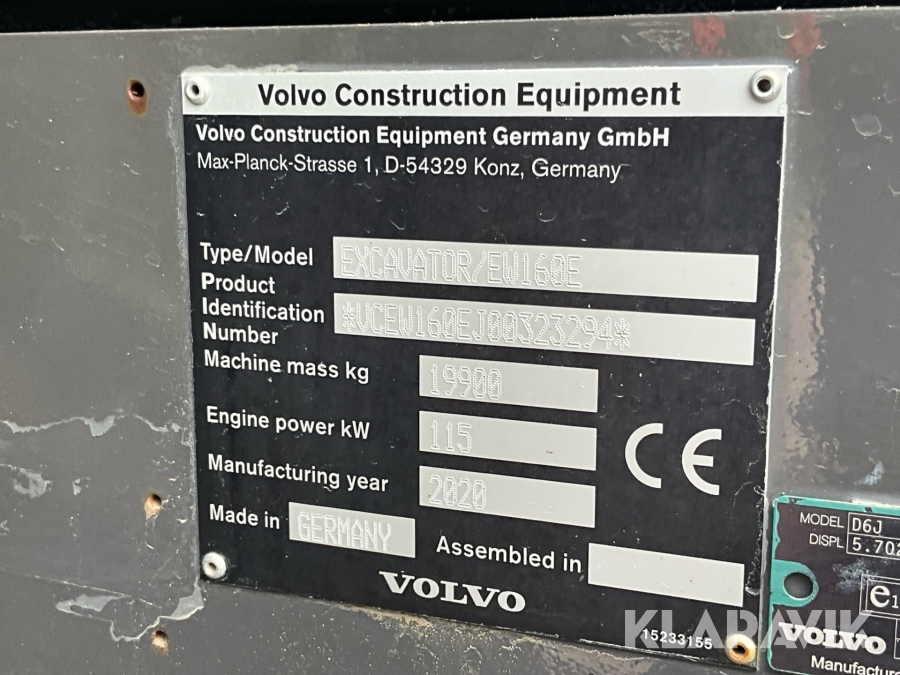 Grävmaskin Volvo EW160E med grävsystem
