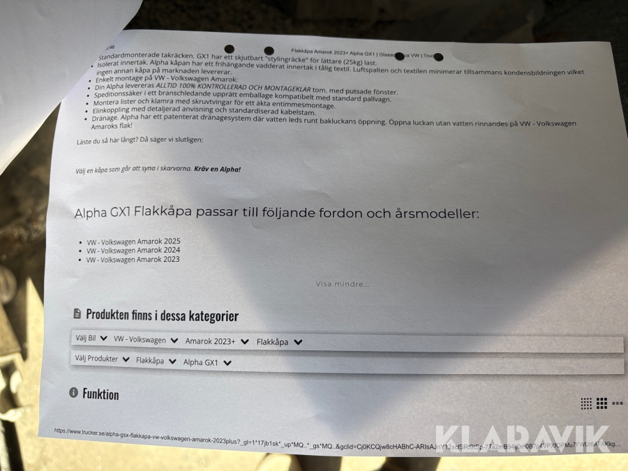 Kåpa Alpha GX1 Amarok
