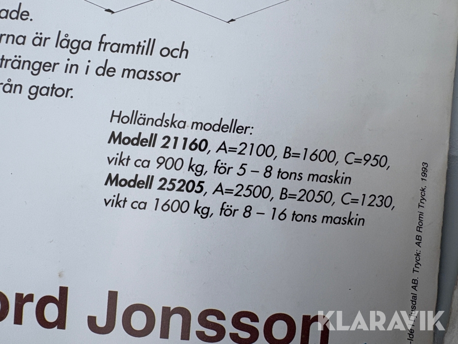 Boka frakt? Det finns ingen specifik information om frakt för just det här objektet, men om du skickar oss en förfrågan via vårt fraktformulär, så undersöker vi möjligheten. Paket, EU-pall eller större maskin? Klaravik har fraktavtal med Schenker och i de fall vi kan hjälpa till med frakt gäller det objekt som ryms i paket eller inom en EU-pall (upp till 120*80 cm och 990 kg). Det går att beställa frakt inom Sverige, dock inte till utlandet. Vid frakt på större maskiner rekommenderar vi gärna transportföretag som du kan kontakta.