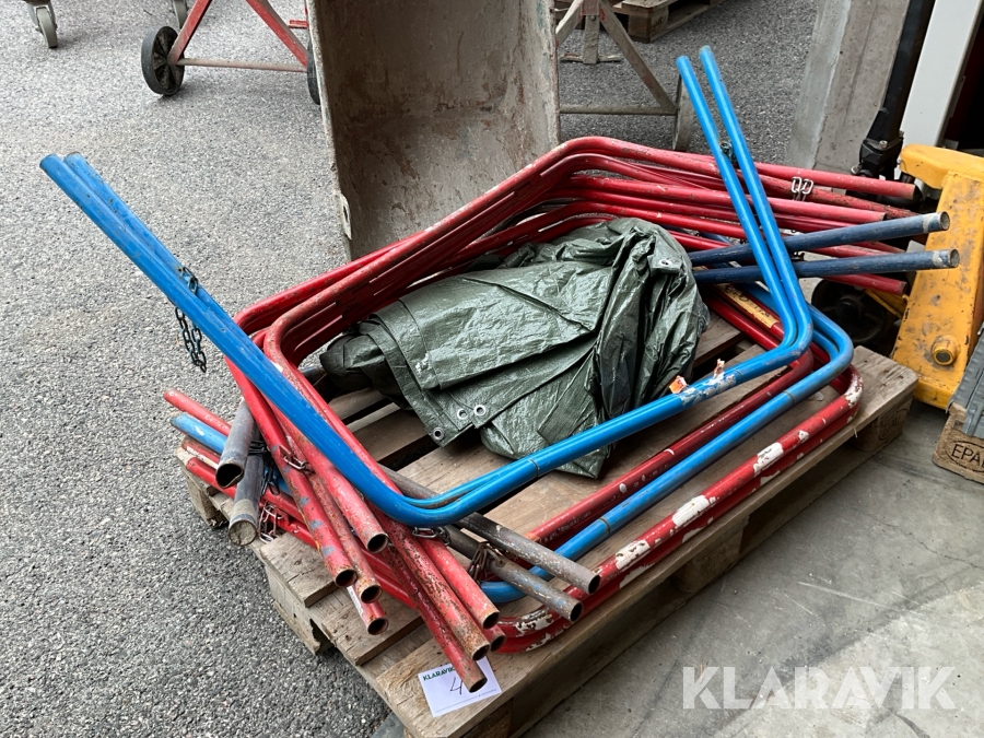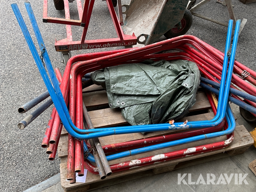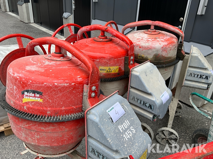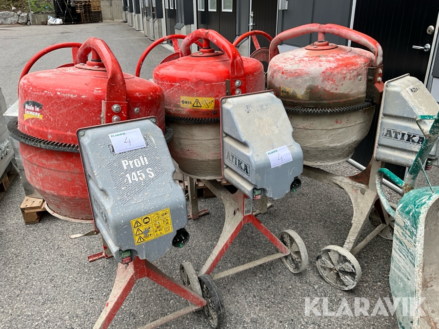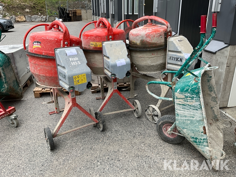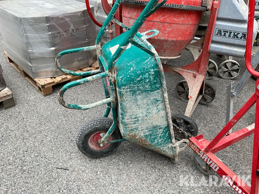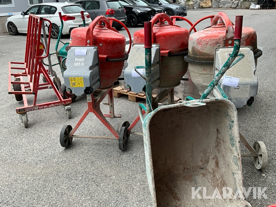 Byggutrustning cementblandare, gipsvagn, skottkärror, bockar