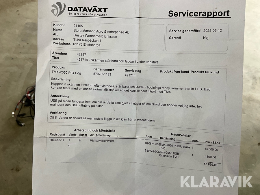 Boka frakt? Det finns ingen specifik information om frakt för just det här objektet, men om du skickar oss en förfrågan via vårt fraktformulär, så undersöker vi möjligheten. Paket, EU-pall eller större maskin? Klaravik har fraktavtal med Schenker och i de fall vi kan hjälpa till med frakt gäller det objekt som ryms i paket eller inom en EU-pall (upp till 120*80 cm och 990 kg). Det går att beställa frakt inom Sverige, dock inte till utlandet. Vid frakt på större maskiner rekommenderar vi gärna transportföretag som du kan kontakta.