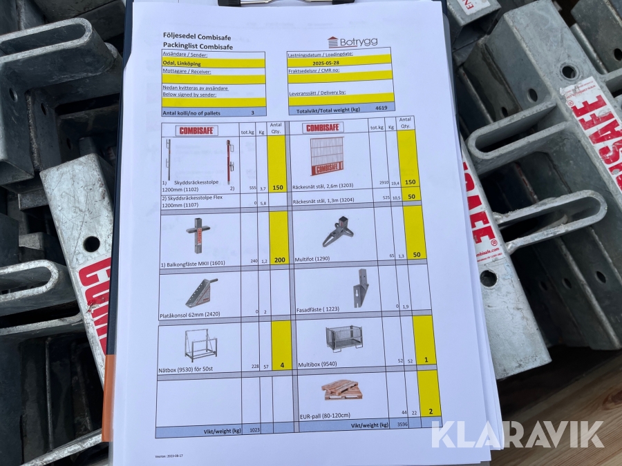 Boka frakt? Det finns ingen specifik information om frakt för just det här objektet, men om du skickar oss en förfrågan via vårt fraktformulär, så undersöker vi möjligheten. Paket, EU-pall eller större maskin? Klaravik har fraktavtal med Schenker och i de fall vi kan hjälpa till med frakt gäller det objekt som ryms i paket eller inom en EU-pall (upp till 120*80 cm och 990 kg). Det går att beställa frakt inom Sverige, dock inte till utlandet. Vid frakt på större maskiner rekommenderar vi gärna transportföretag som du kan kontakta.
