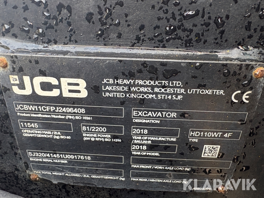 Grävmaskin JCB Hydradig 110w
