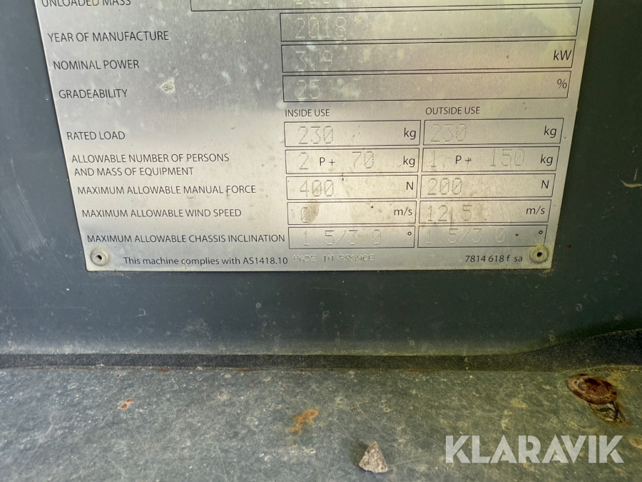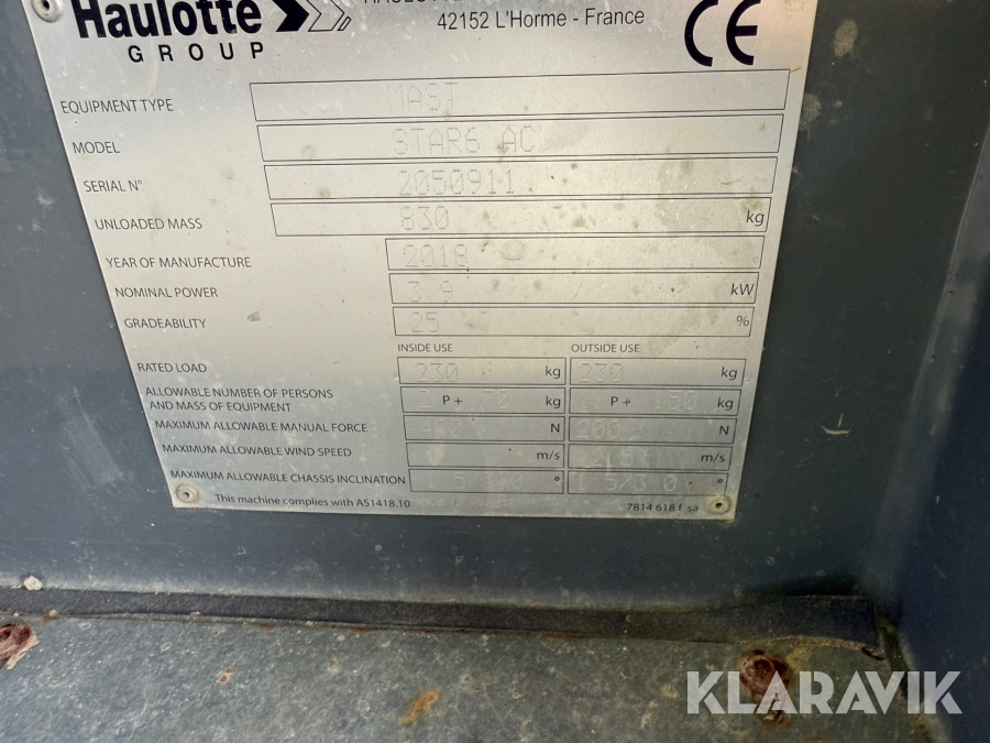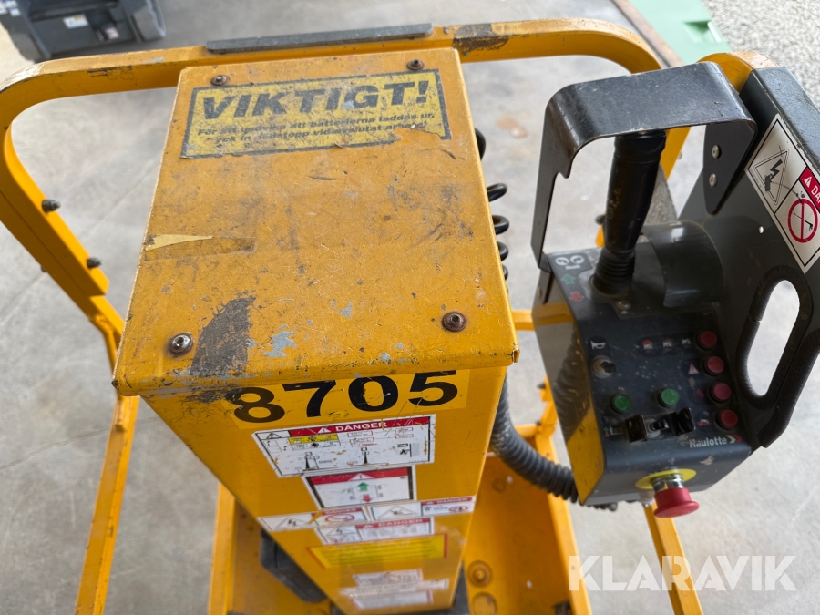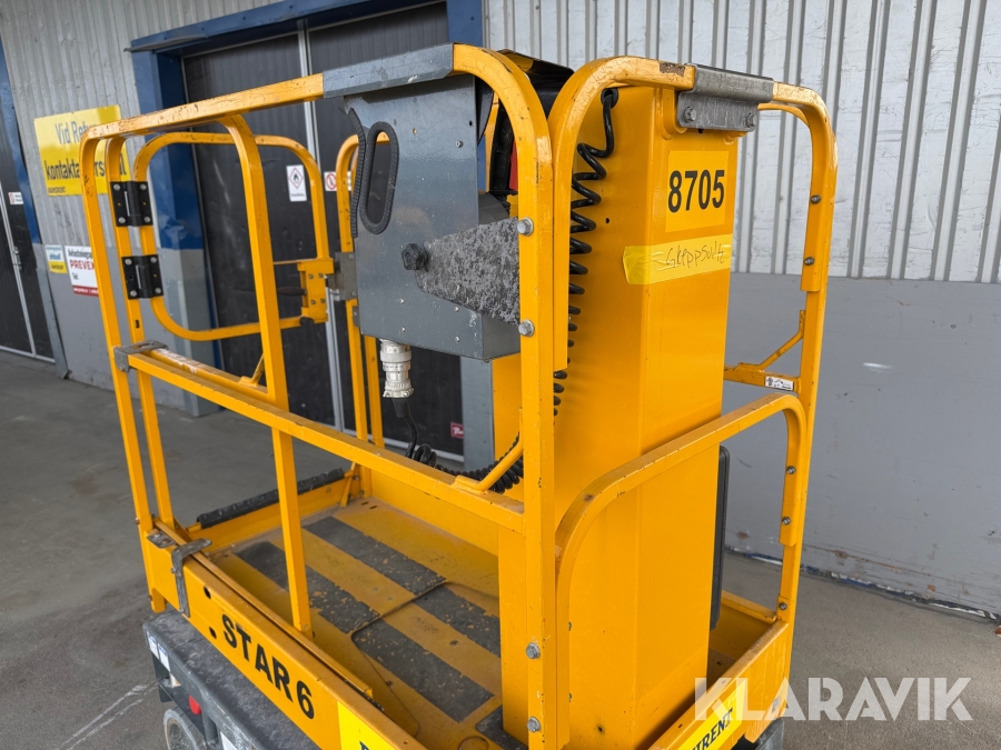 HAULOTTE STAR6+ är en eldriven pelarlift med en arbetshöjd på 5,8 meter och en plattformshöjd på 3,8 meter. Den har en högre lastkapacitet på 230 kg och en rymligare plattform med en utdragbar del för ökad räckvidd. Med icke-märkande däck och tyst batteridrift är den idealisk för inomhusbruk i lager, butiker och andra trånga miljöer. Den väger 835 kg, har en körhastighet på upp till 4,5 km/h och erbjuder stabilitet samt smidig manövrering för säkert och effektivt arbete på höjd.
