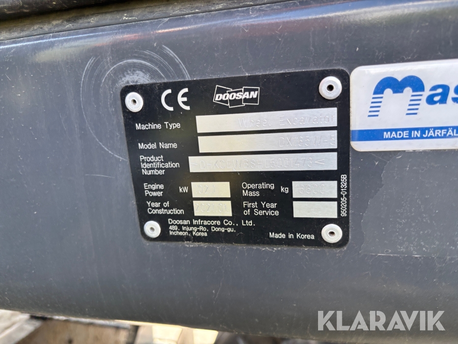 Grävmaskin Doosan DX165W-5