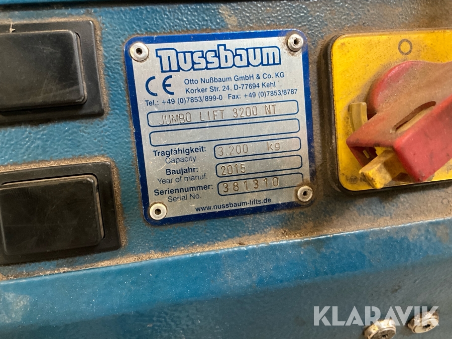 Saxlyft billyft Nussbaum Jumbo lift 3200 NT