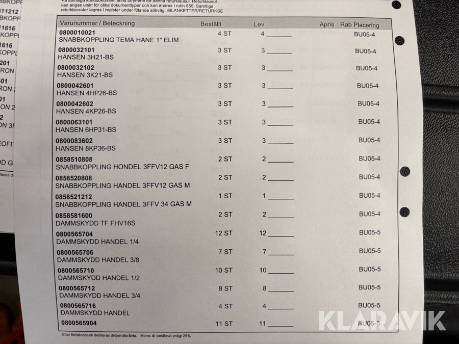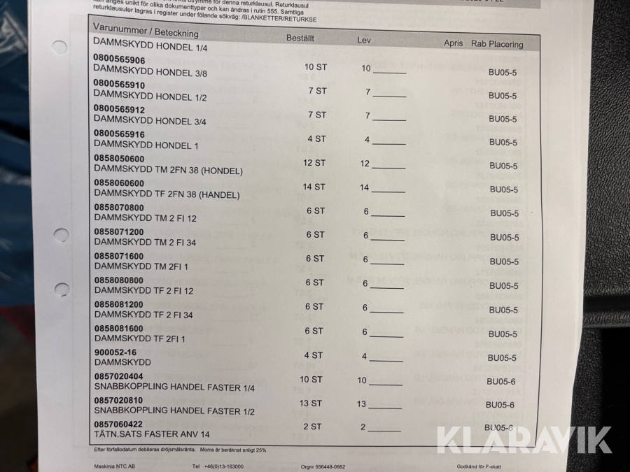Boka frakt? Det finns ingen specifik information om frakt för just det här objektet, men om du skickar oss en förfrågan via vårt fraktformulär, så undersöker vi möjligheten. Paket, EU-pall eller större maskin? Klaravik har fraktavtal med Schenker och i de fall vi kan hjälpa till med frakt gäller det objekt som ryms i paket eller inom en EU-pall (upp till 120*80 cm och 990 kg). Det går att beställa frakt inom Sverige, dock inte till utlandet. Vid frakt på större maskiner rekommenderar vi gärna transportföretag som du kan kontakta.
