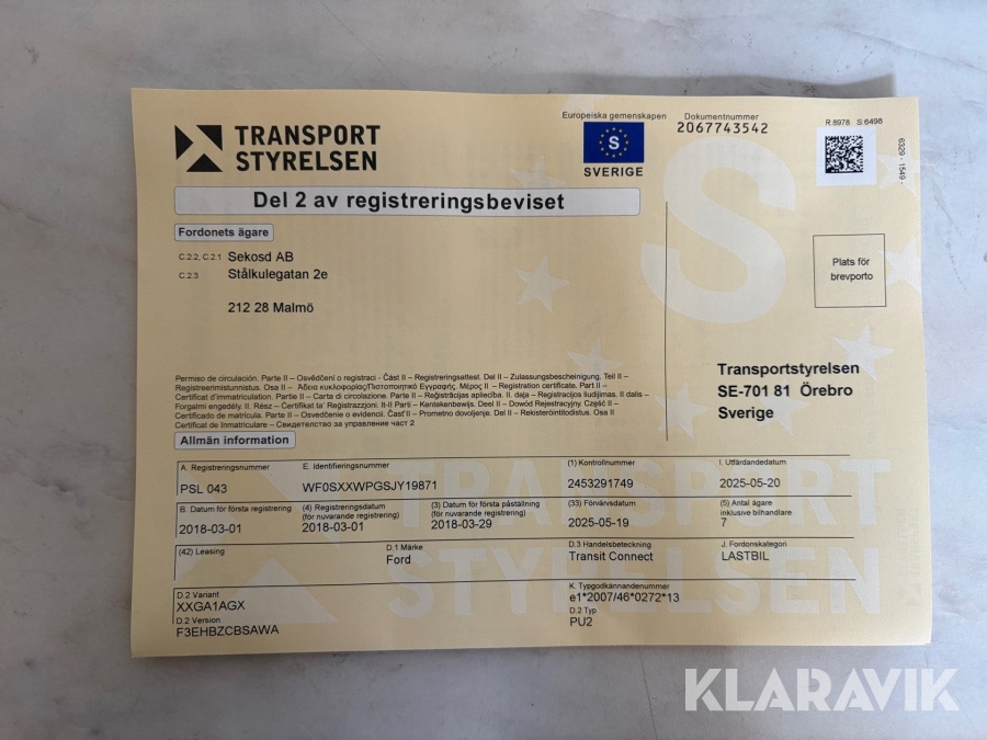 • Serie/chassinummer framgår