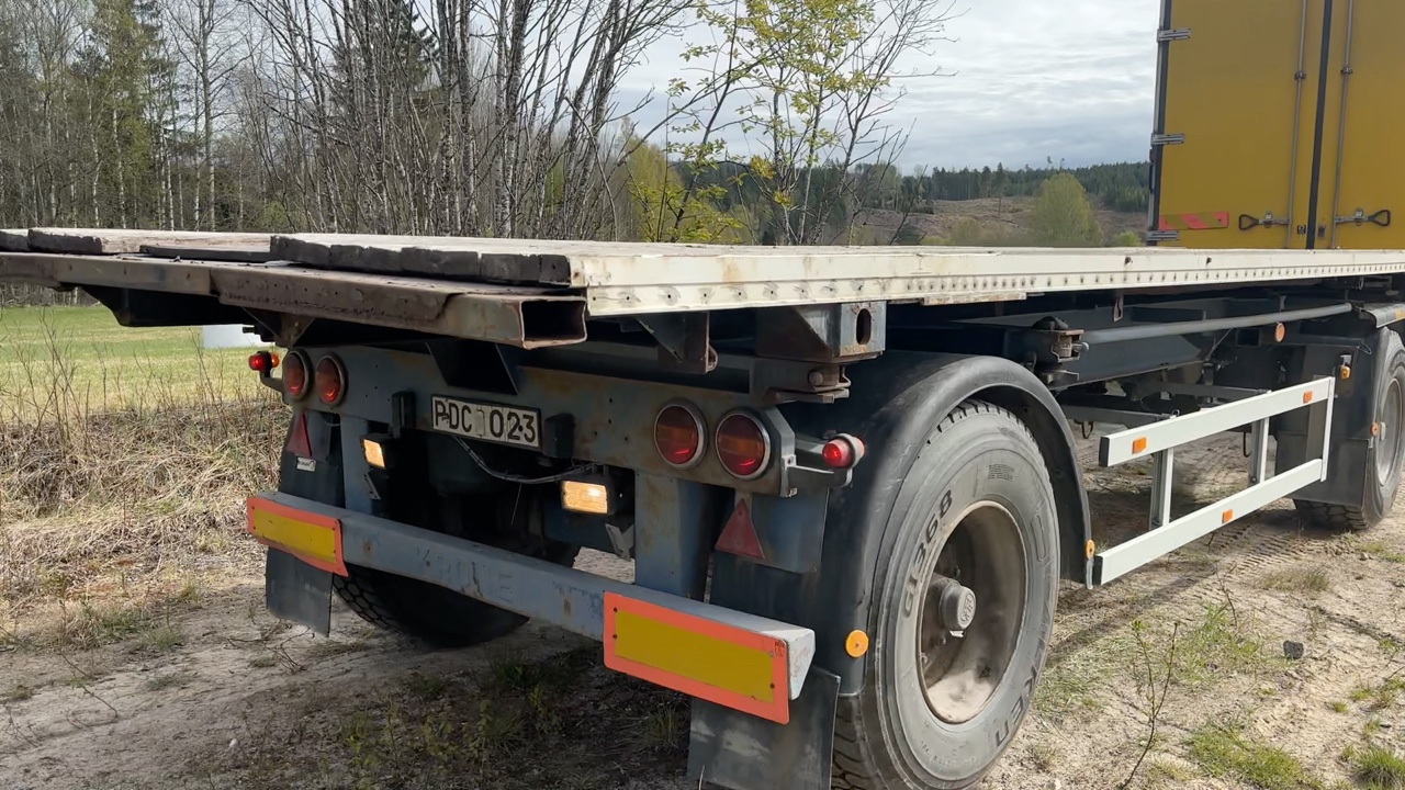 Containerchassi Krone AZW 20E med påbyggt lastväxlarflak