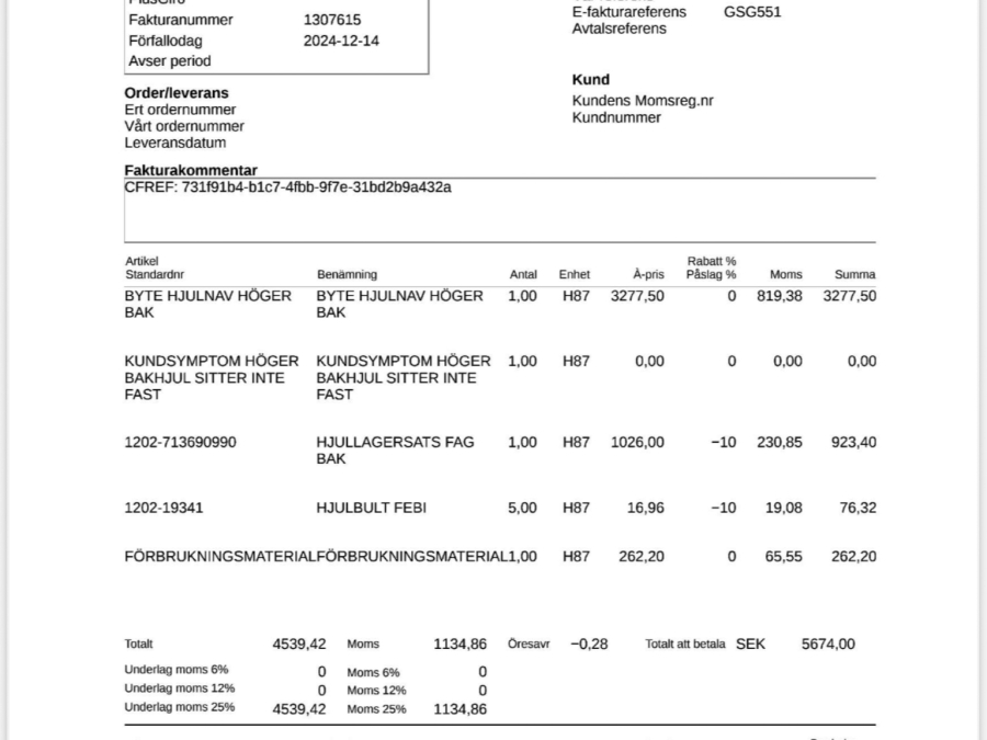 • Serie/chassinummer framgår