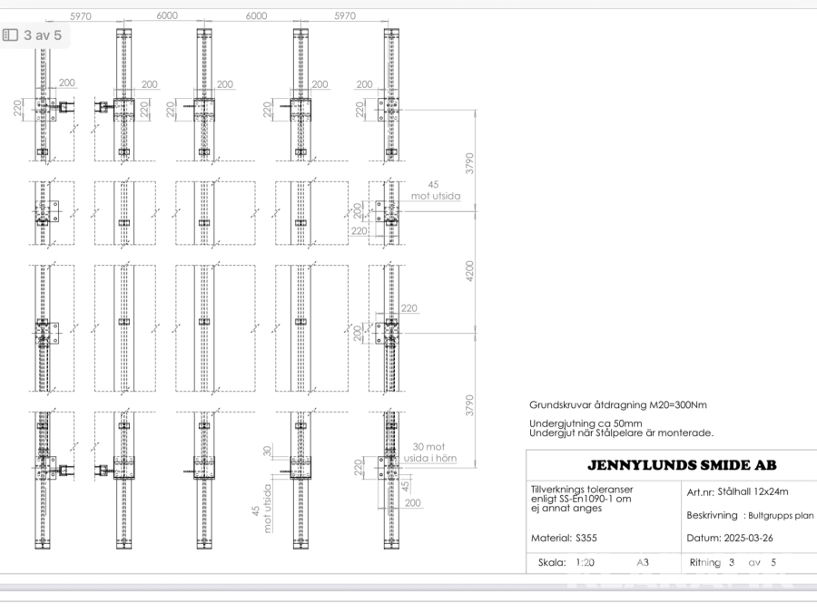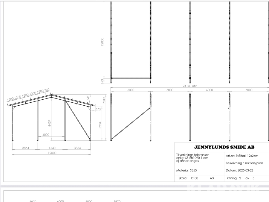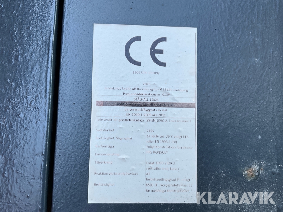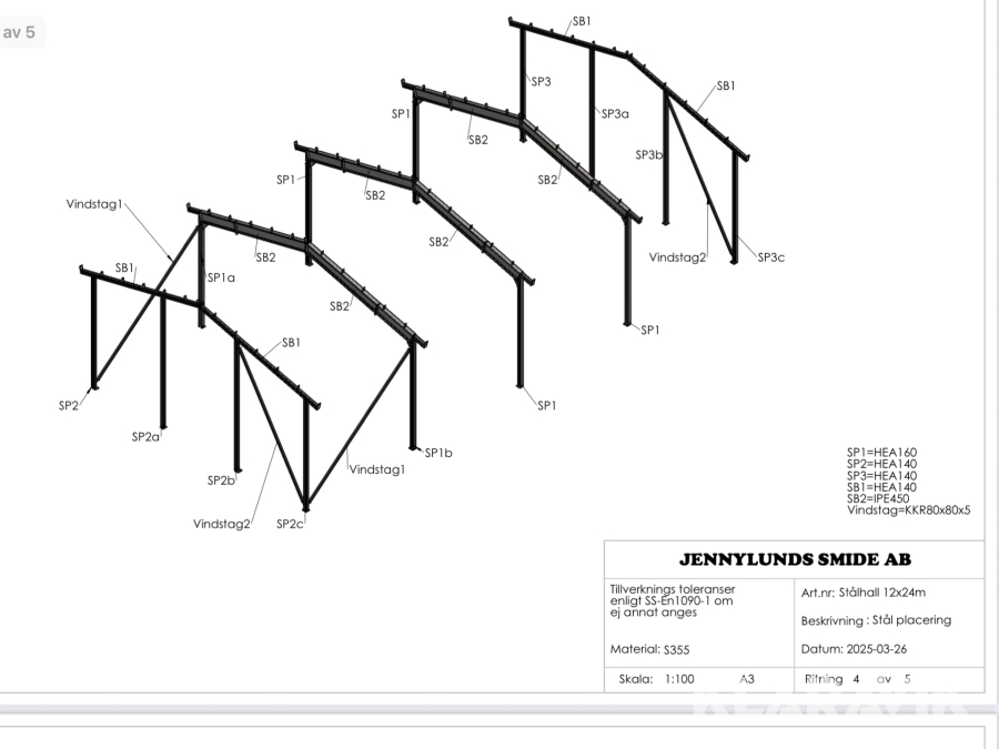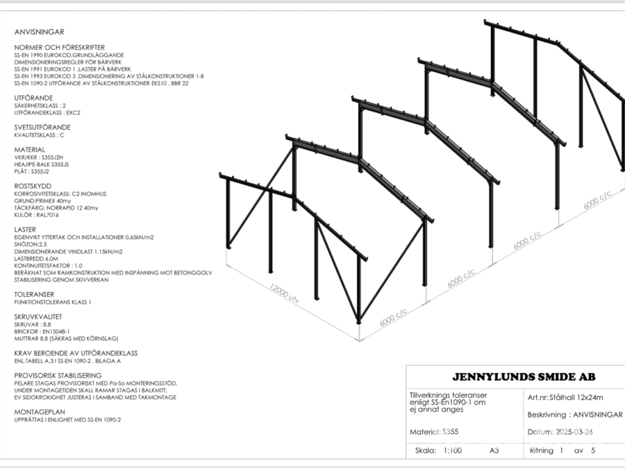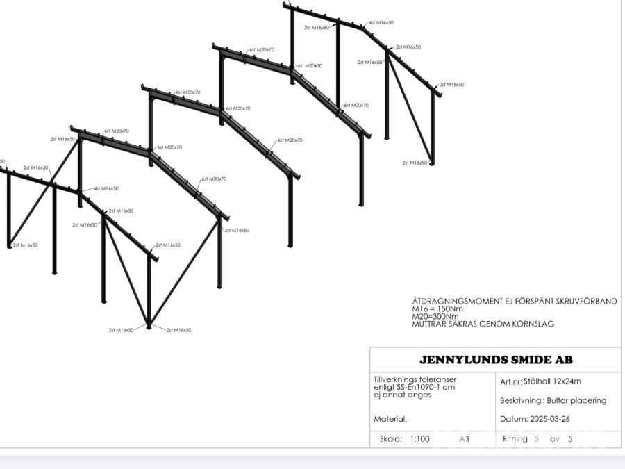Stomme för maskinhall Jennylundssmide AB Stålhall 12x24M