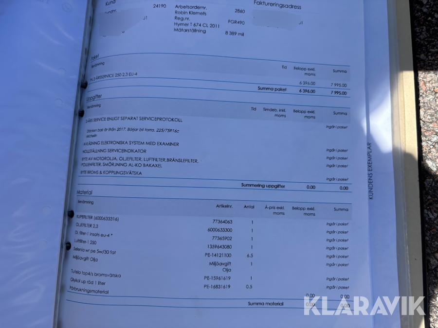 • Serie/chassinummer framgår