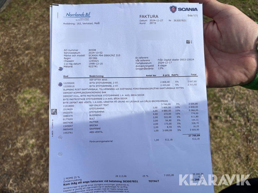 Du som köpare är skyldig att kontrollera objektet vid hämtning. Skiljer sig något avsevärt jämfört med informationen på klaravik.se? Kontakta då Klaravik innan du tar objektet från platsen. Läs fullständiga köpvillkor.
