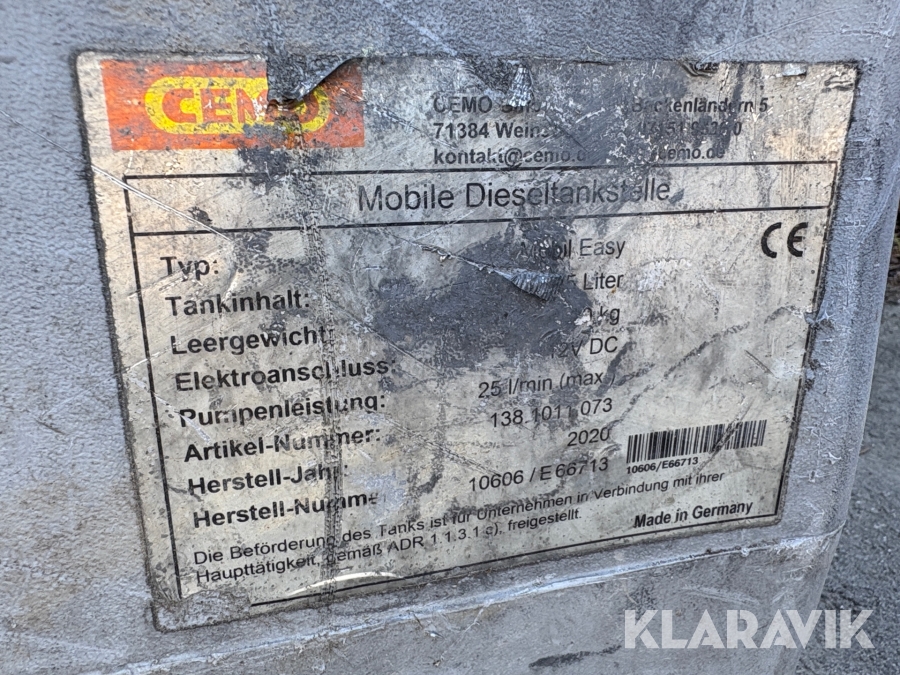 Dieseltank med pump Cemo