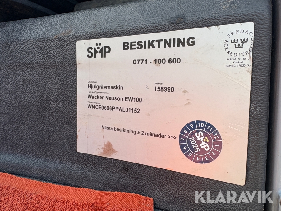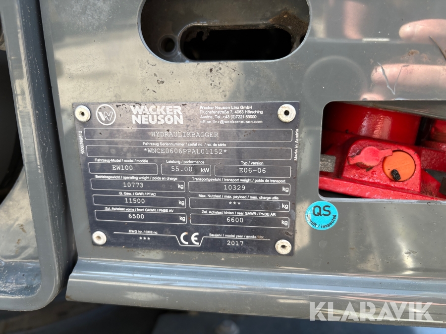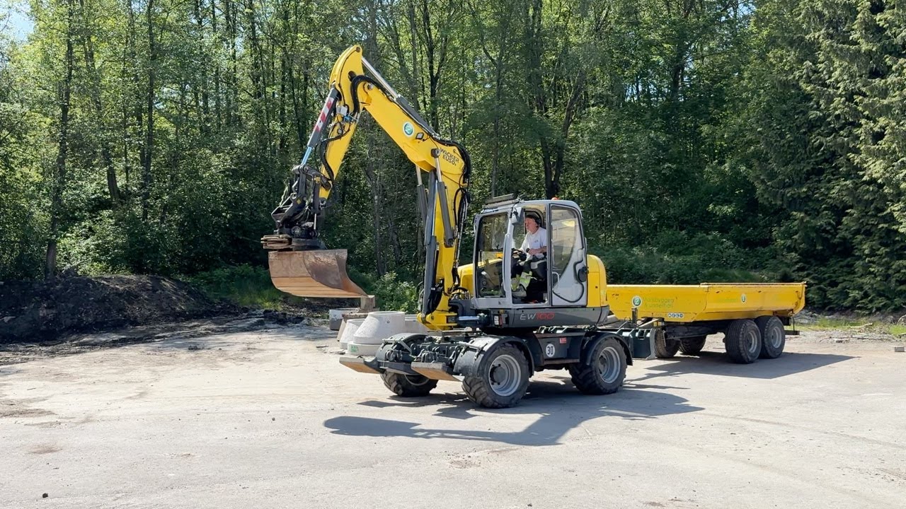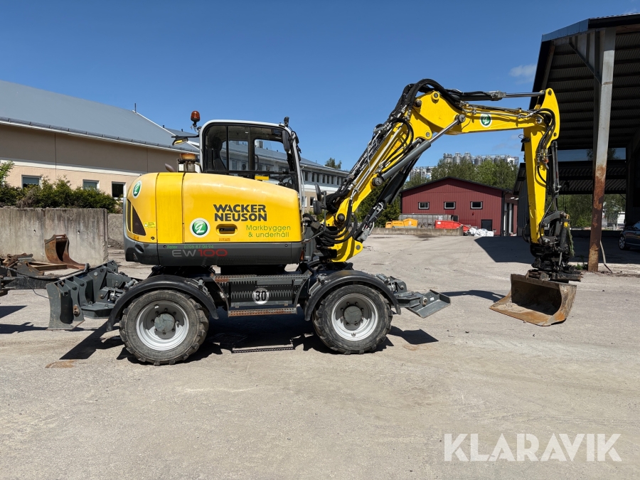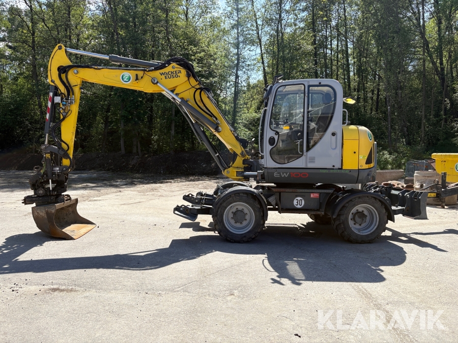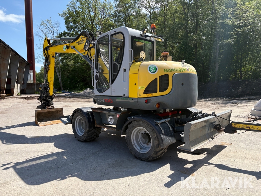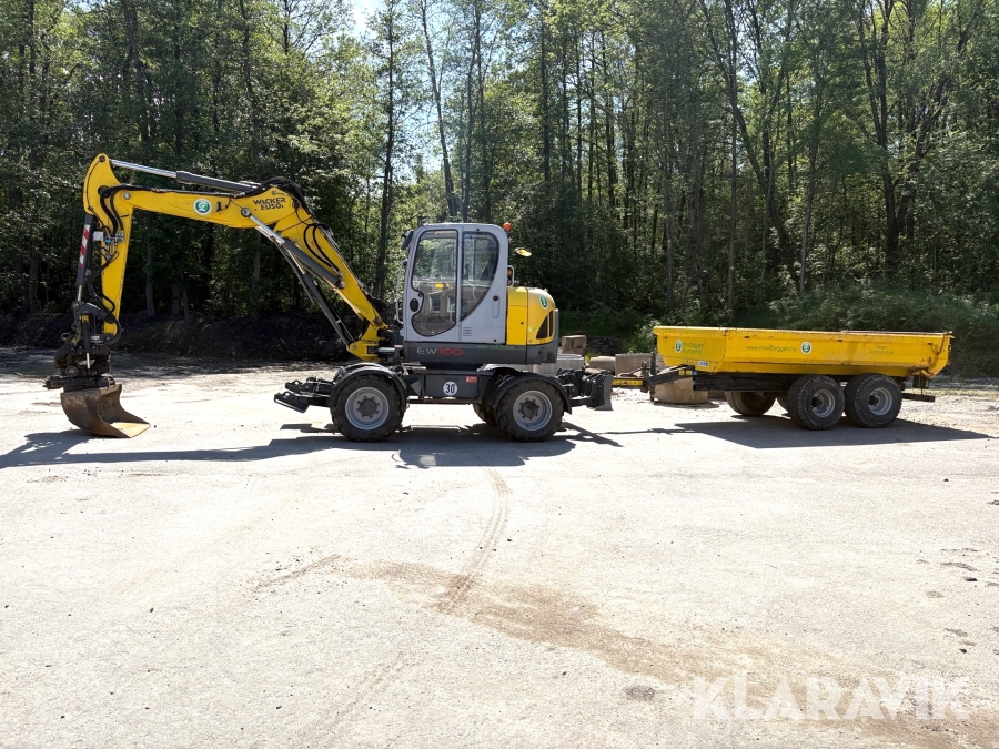Grävmaskin Wacker Neuson EW100 med kärra och redskap