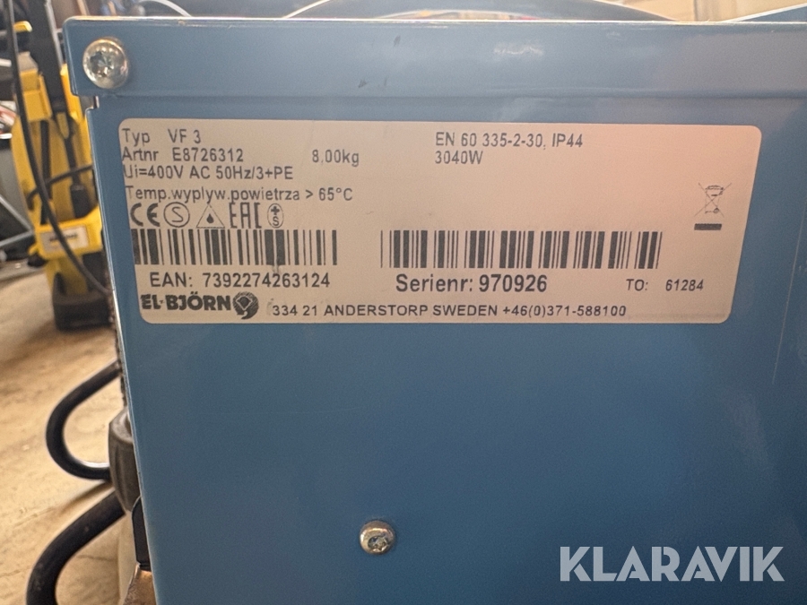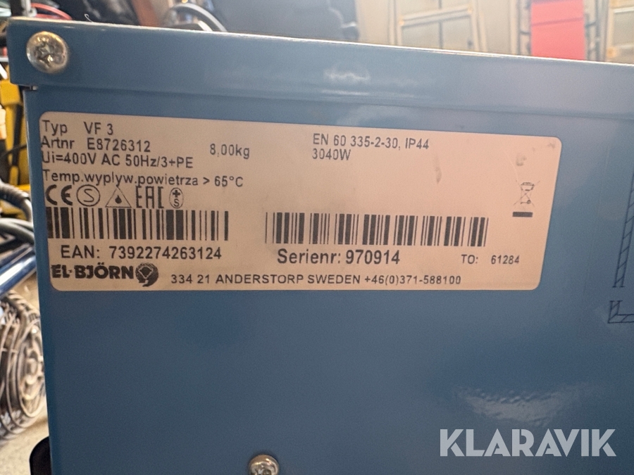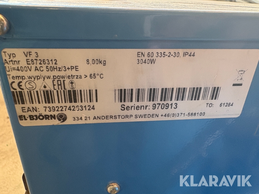 Boka frakt? Det finns ingen specifik information om frakt för just det här objektet, men om du skickar oss en förfrågan via vårt fraktformulär, så undersöker vi möjligheten. Paket, EU-pall eller större maskin? Klaravik har fraktavtal med Schenker och i de fall vi kan hjälpa till med frakt gäller det objekt som ryms i paket eller inom en EU-pall (upp till 120*80 cm och 990 kg). Det går att beställa frakt inom Sverige, dock inte till utlandet. Vid frakt på större maskiner rekommenderar vi gärna transportföretag som du kan kontakta.