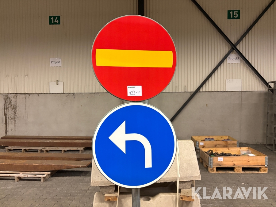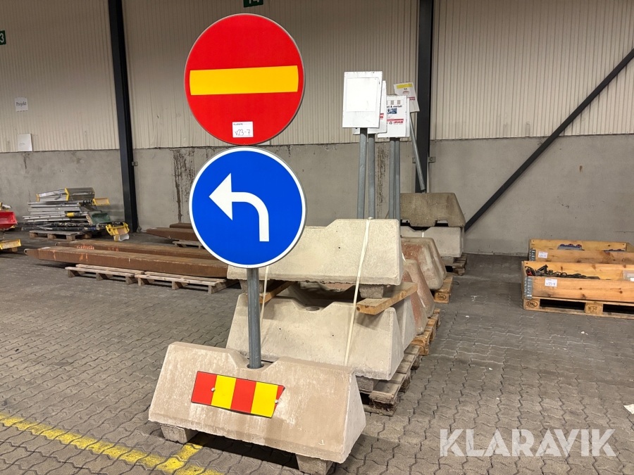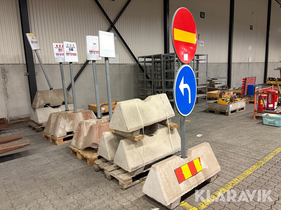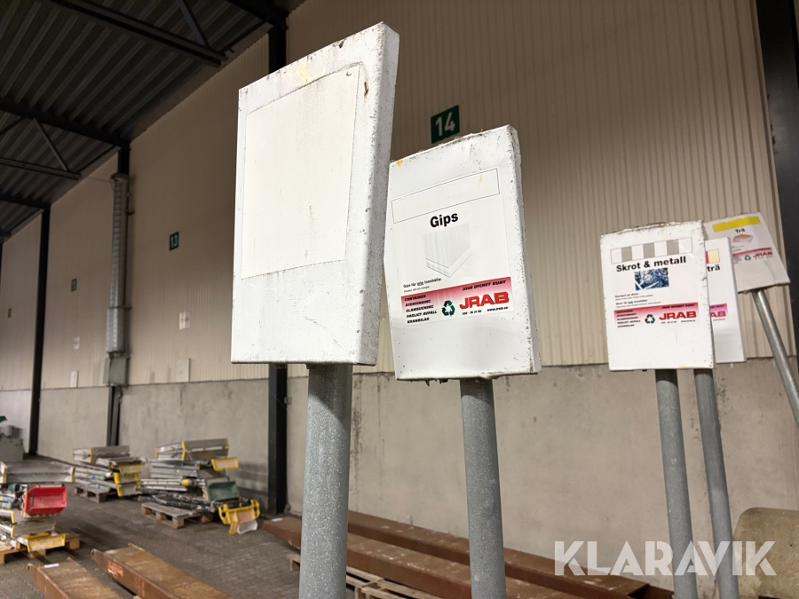 Stolpfundament med stolp och skyltar 11 st varav 6 st med stolpar