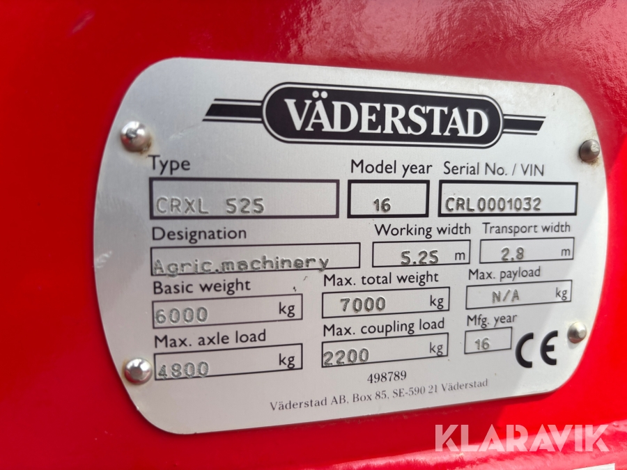 Tallriksredskap Väderstad Carrier XL 525