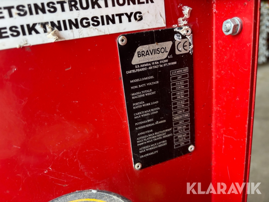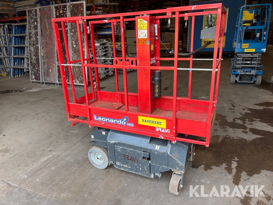 BRAVIISOL Leonardo HD är en kompakt och eldriven pelarlift som lämpar sig utmärkt för arbete på höjd i trånga utrymmen. Med en arbetshöjd på upp till 4,9 meter och en smal, lätt konstruktion kan den enkelt köras genom dörrar och in i hissar utan att operatören behöver kliva av. Liften är designad för att ersätta stegar och ställningar och erbjuder både säkerhet och effektivitet, särskilt vid montage- och servicearbeten inomhus. Robust stålkonstruktion, hög manövrerbarhet och låga underhållskrav gör Leonardo HD till ett smart val för arbetsplatser med begränsat utrymme.