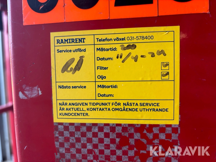 Läs om metodikenPga platsbrist är det viktigt att du som köpare hämtar inom 12 dagar från auktionsavslut. Vid frågor om frakt kontakta trade@ramirent.se.