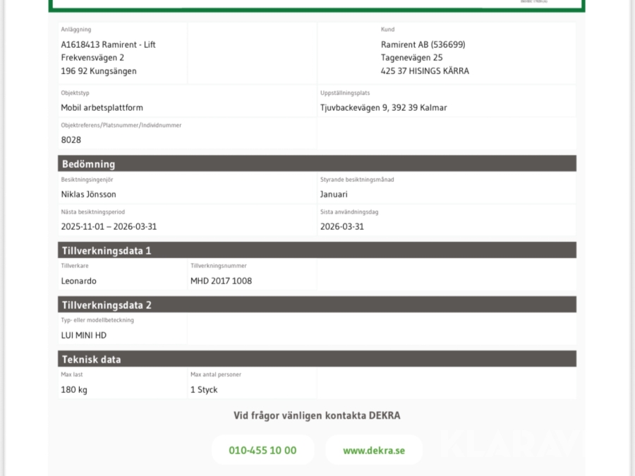 Du som köpare är skyldig att kontrollera objektet vid hämtning. Skiljer sig något avsevärt jämfört med informationen på klaravik.se? Kontakta då Klaravik innan du tar objektet från platsen. Läs fullständiga köpvillkor.
