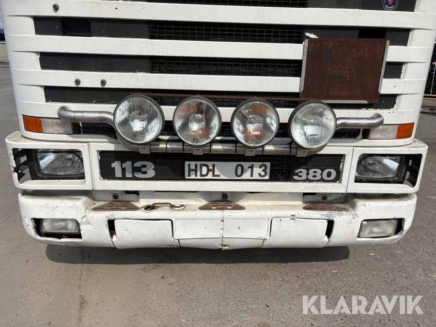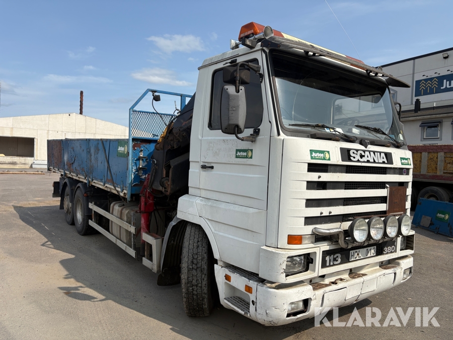 Kranbil med flak Scania 113 380