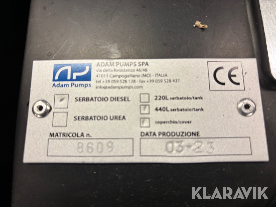 Dieseltank Adam Pumps 440L 12V