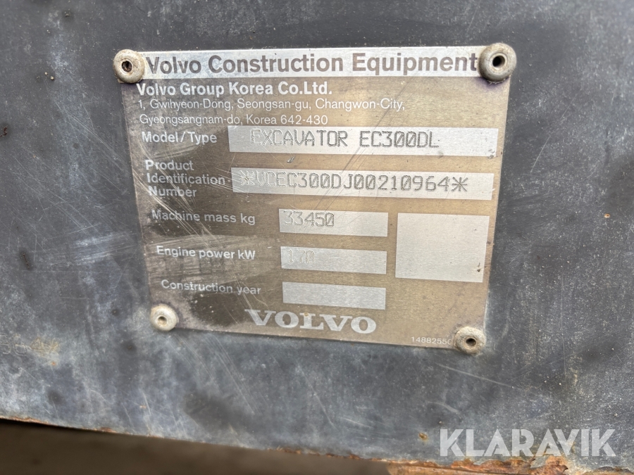 Vänster grävspak som saknas, kommer vara på plats vid försäljning.
