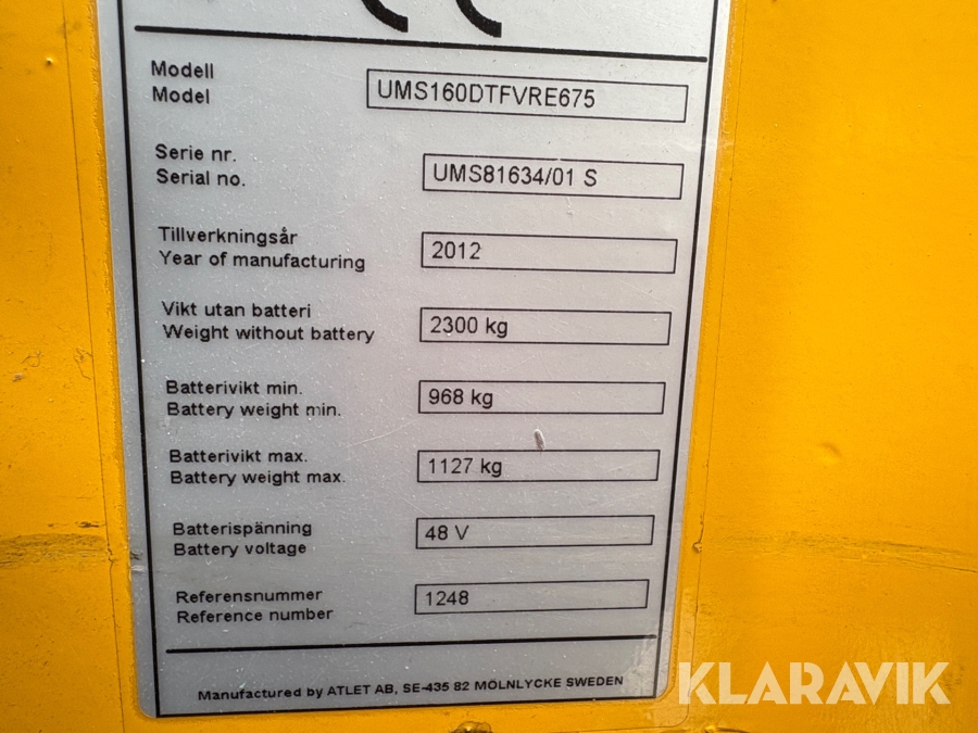 Skjutstativtruck Atlet UMS 160